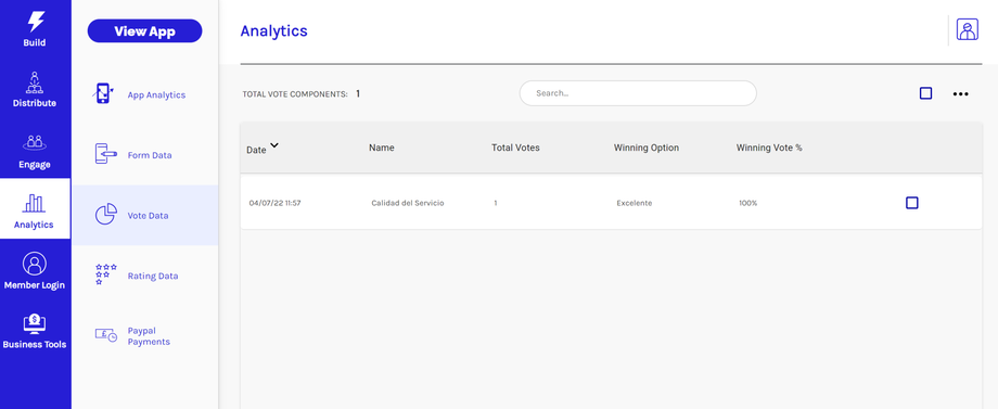 Aquí verás todos los datos de votación que captura el Componente de votación dentro de tu aplicación.