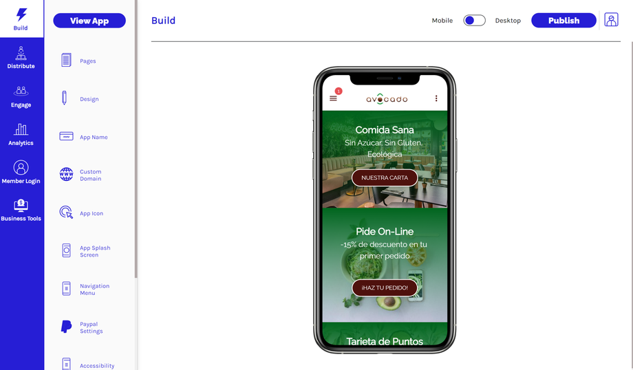 En el visualizador, el menú de tu aplicación mostrará la página anidada como se muestra a continuación: