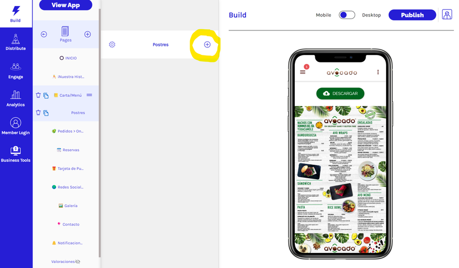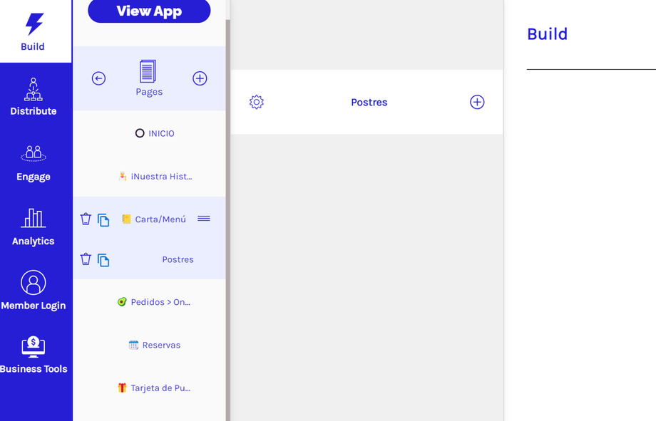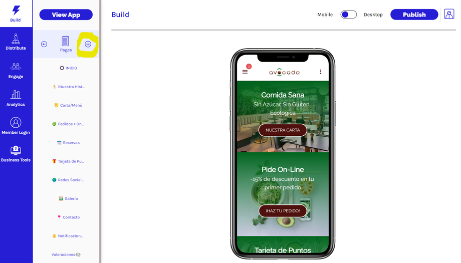 Paso 3 Haz clic en el signo + junto a la sección Páginas/Pages. Si no has creado la página principal, bajo la cual deseas anidar páginas, crea la página principal como una página estándar. Una vez que se crea la página principal, vuelve a hacer clic en el signo + junto a la sección Páginas/Pages en Crear/Build para crear la página anidada.