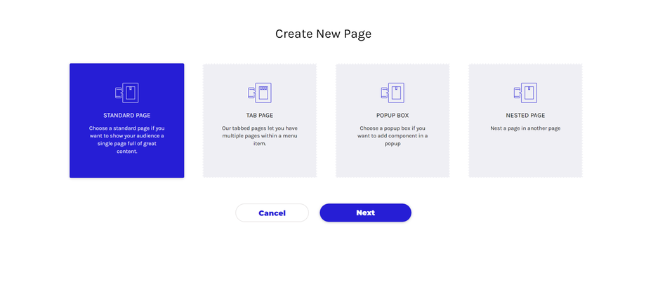 Paso 4: Selecciona la opción "Página anidada/NESTED PAGE" y haz clic en Siguiente.