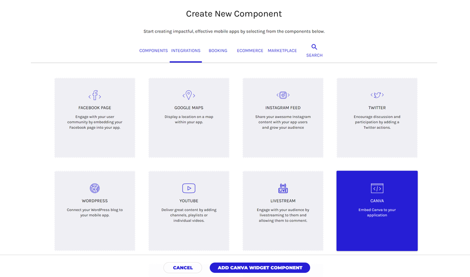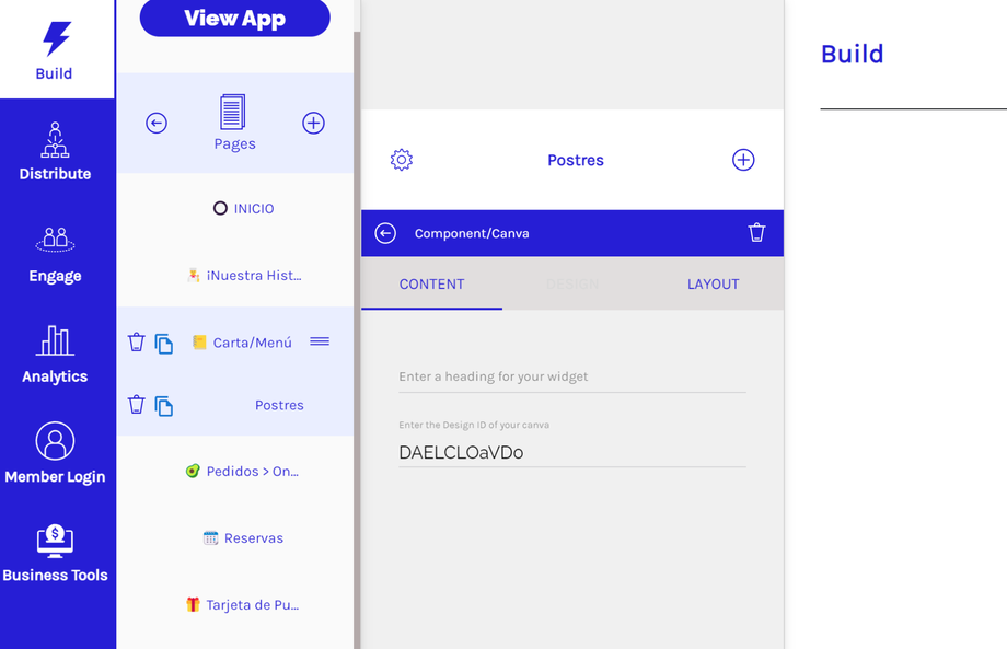 Paso 8: agrega cualquier componente que desees que se muestre en la página anidada. En el siguiente ejemplo, estamos agregando el componente de Canva.