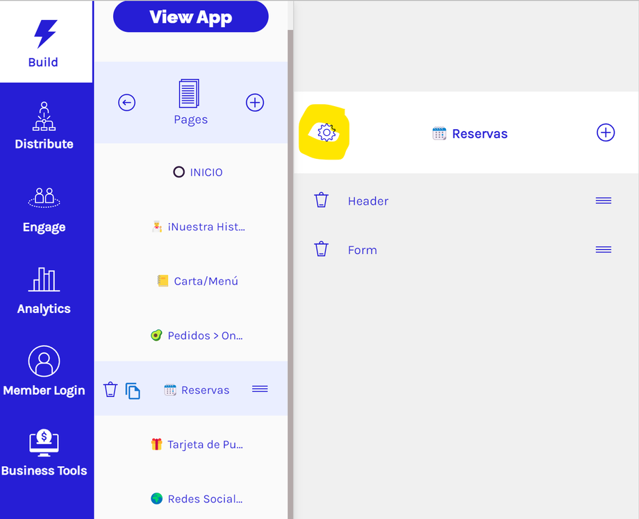 Paso 2: navega a la sección Crear/Build y haz clic en Páginas/Pages.