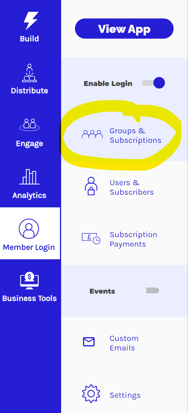 Una vez que esta función está habilitada, el administrador de la aplicación puede crear planes de suscripción para grupos y administrar el acceso al contenido de tu aplicación. Esto permitirá a los administradores de la aplicación cobrar a los usuarios/clientes de la aplicación una tarifa recurrente (mensual o anual) para acceder a la aplicación o sus servicios.