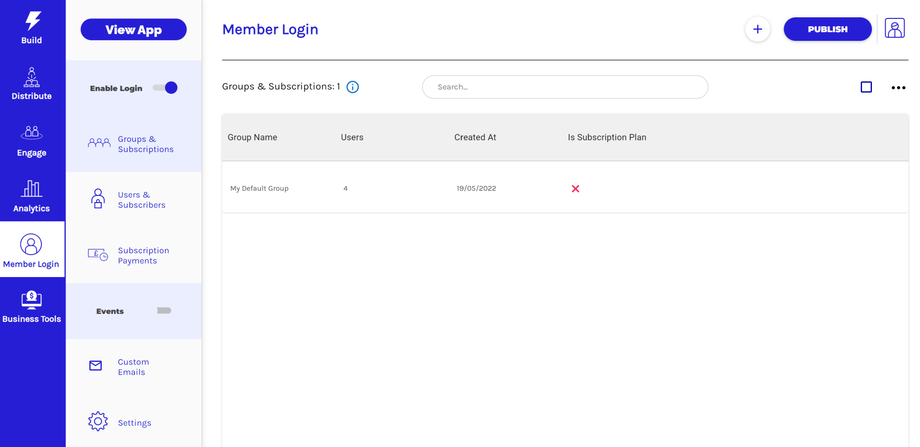 Cualquier usuario que se registre a través de la función de inicio de sesión de miembro en tu aplicación con su dirección de correo electrónico se asignará automáticamente al grupo predeterminado con acceso limitado o nulo a las páginas/contenido de tu aplicación.