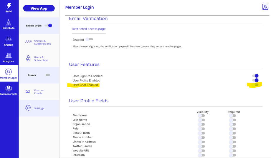Para habilitar la función de chat de miembros, inicia sesión en tu panel de control y habilite el chat de usuario desde la configuración de la página de inicio de sesión de miembros.