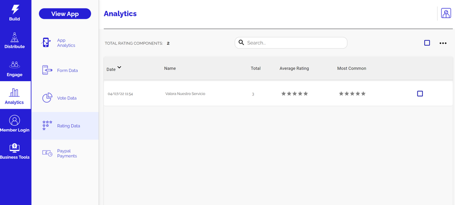 Todas las calificaciones y comentarios recibidos de tus componentes de calificación se recopilarán y mostrarán en la sección Análisis de tu panel de control.