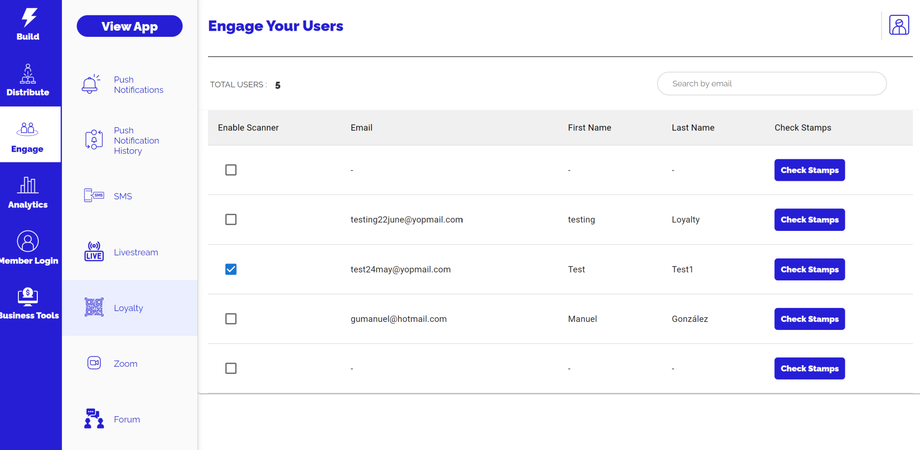 - Paso 2: en la sección Loyalty, encontrarás todos los usuarios registrados en tu aplicación.