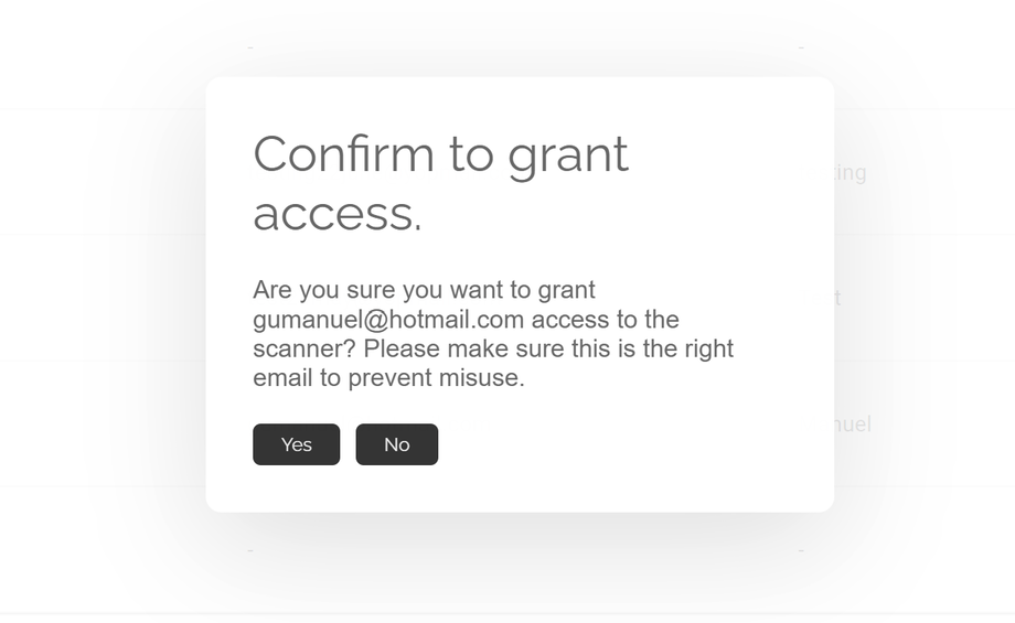- Paso 3: selecciona el usuario al que deseas conceder acceso al escáner haciendo clic en la casilla de verificación: