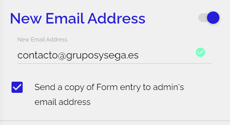 También puedes agregar una dirección de correo electrónico alternativa para redirigir la copia del formulario. Para habilitar la opción de dirección de correo electrónico alternativa, habilita el botón de alternancia e ingresa la sección de tu dirección de correo electrónico. También puedes enviar una copia del formulario a los administradores o a su dirección de correo electrónico registrada.