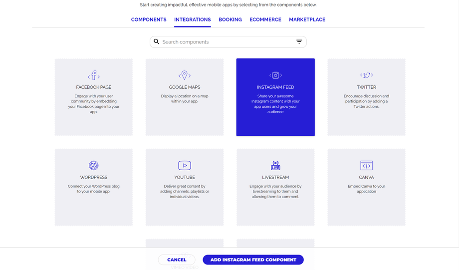 El componente de Instagram te permite incrustar tu cuenta de Instagram en tu aplicación.