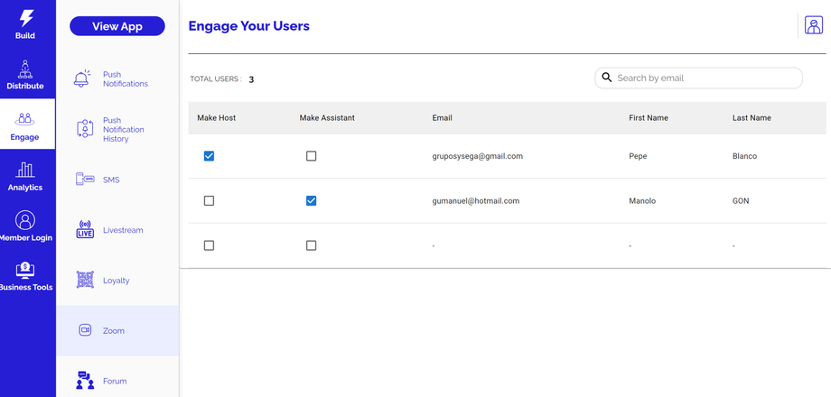 Paso 5 : también puedes seleccionar un Anfitrión o un Asistente para tu reunión desde la sección Engage -> Zoom de tu panel de control.