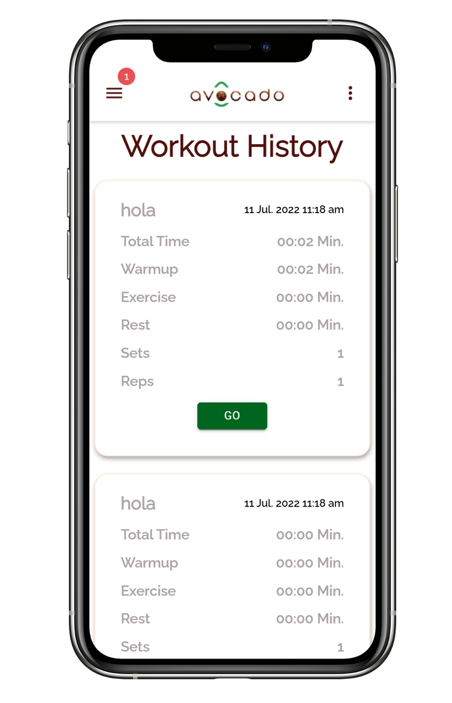 Tus rutinas de entrenamiento quedarán registradas y podrás verlas haciendo clic en los tres puntos que encontrará en la parte superior derecha de tu aplicación: