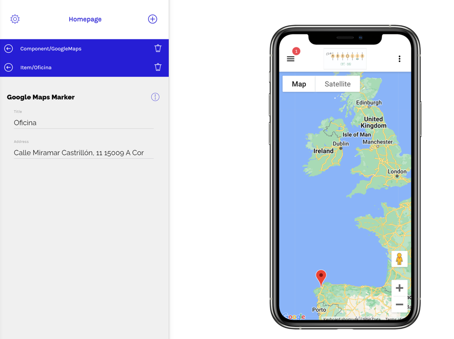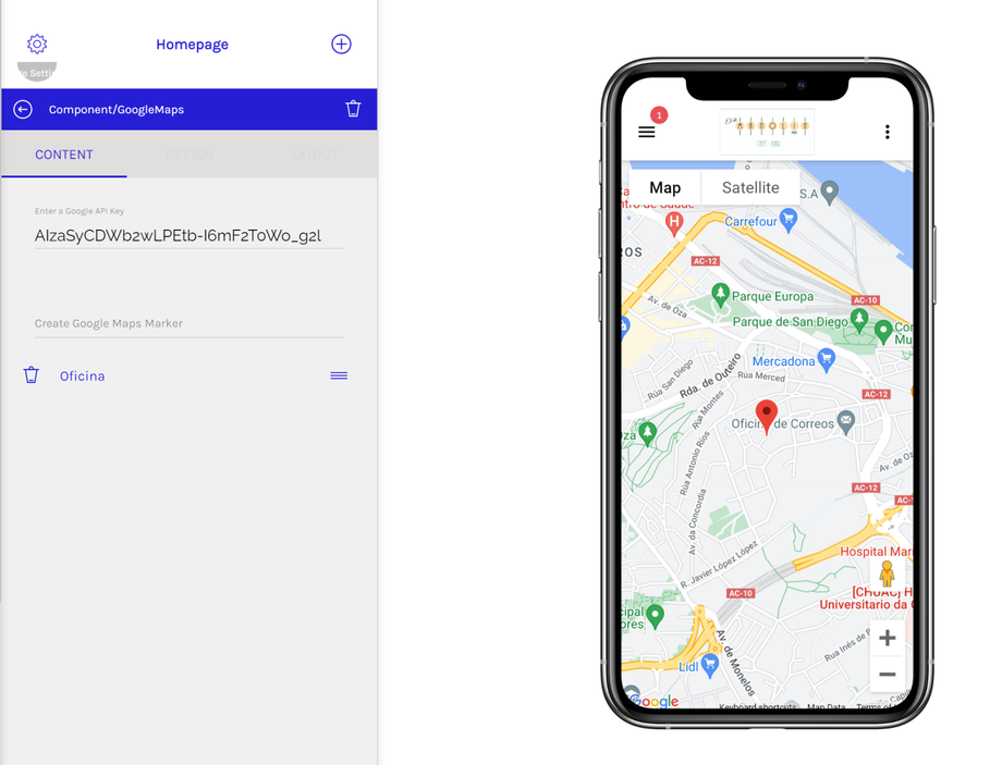 Una vez creada la API, cópiala y pégala en el componente de Google Maps en tu panel. Mientras crea marcadores, y recuerda proporcionar la dirección completa de la ubicación para marcar la ubicación exacta y publicar tu aplicación.