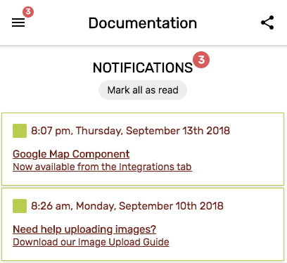Las notificaciones se ven en la aplicación en iOS. Aparecerá una insignia de notificación roja con el número de notificaciones no leídas en la esquina de la aplicación. Cuando los usuarios marquen sus notificaciones como leídas, la insignia desaparecerá. Sin embargo iOS actualmente no admite notificaciones push automáticas para aplicaciones web progresivas (PWA), es decir las notificaciones llegarán a la aplicación y quedarán reflejadas en la misma, pero no emitirán un sonido ni aparecerán en la pantalla del móvil si el usuario no está usando la aplicación.